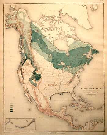 Map Showing the Distribution of the Genera Abies and Picea (the Firs and Spruces) in North America