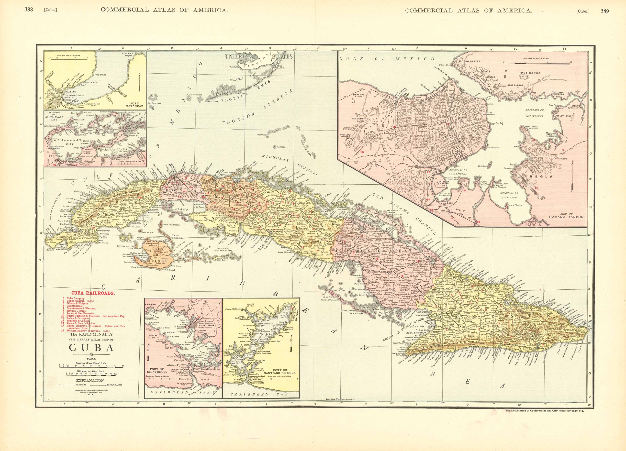 This map of Cuba was produced by Rand McNally and Co. as part of its Commercial Atlas of America. These maps are some of our favorite maps because of the large size of each map (25.5 x 20.5). The detail shown on each map is exceptional because of the map size. These maps were intended to be used by business for shipping and other uses. Roads, railroads, rivers, and buildings are clearly shown. There is more detail on these maps than any others during this time period.