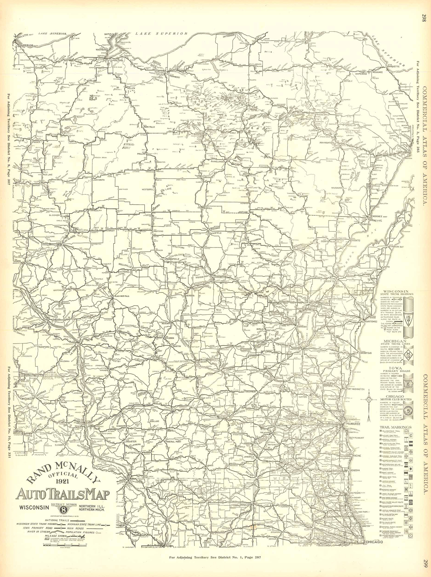 McNally’s 1922 Map of Auto Trails Map, Wisconsin, Northern Illinois, Northern Michigan