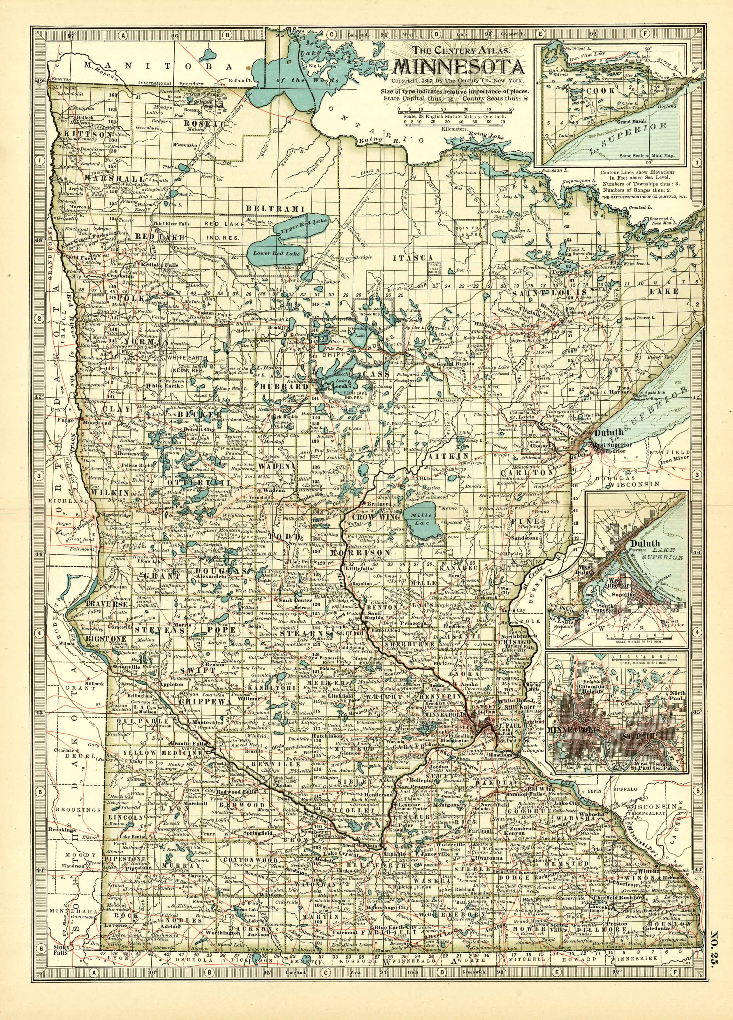 We are proud to offer this wonderfully detailed map by Benjamin E. Smith. It was published as part of The Century Atlas, done in 1899. We believe the maps that were part of this publishing effort far outdo other maps in this time period. We don’t normally highly recommend ‘printed color’ maps such as these, however, a view of these maps will prove to you that they are unique in style, presentation and detail. They are visually pleasing and finely engraved. We have framed a number of these maps for customers and they look exceptional.
