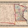 This beautiful map of Minnesota and Dacotah Territory (North and South Dakota) was made by S. Augustus Mitchell, in 1860, for his New General Atlas. This map features bright original hand coloring that differentiates regions and county sections, a decorative floral border, and fine detailing (including railroads, rivers, lakes, roads, cities, and towns).