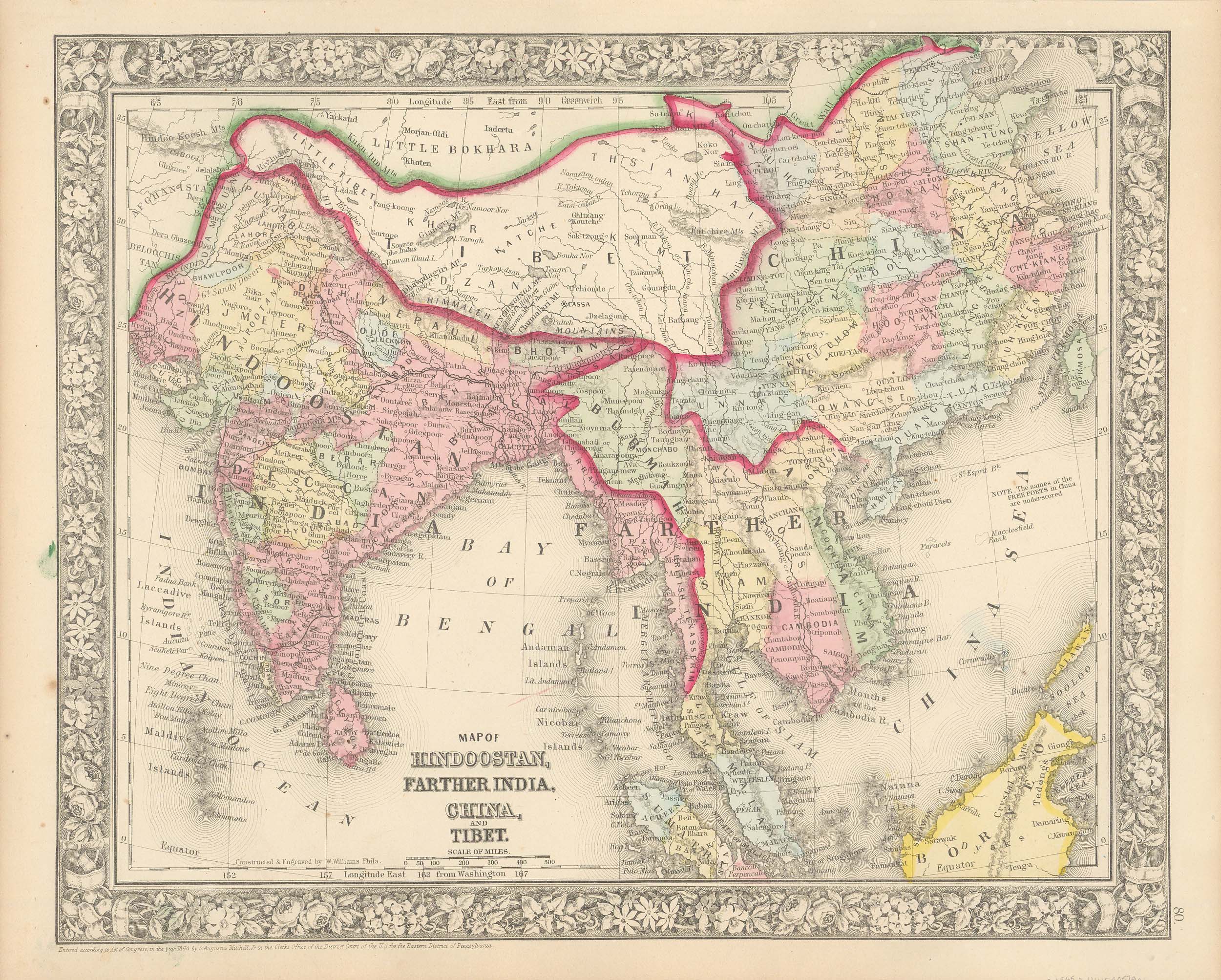Mitchell’s 1865 Map of Hindoostan, Farther India, China, and Tibet