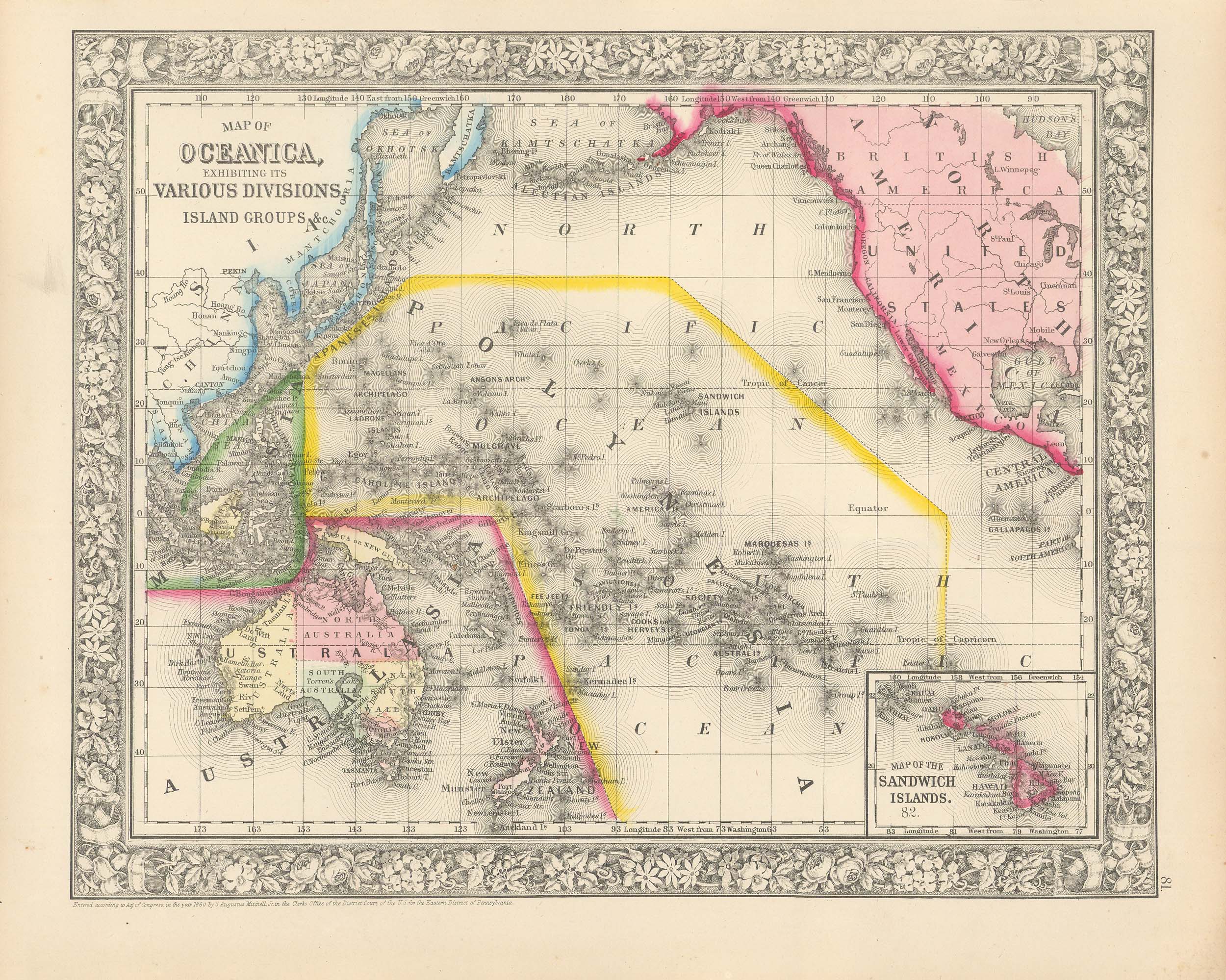 Mitchell’s 1865 Map of Oceanica exhibiting its Various Divisions and Island Groups
