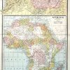 These detailed maps of N.W. Africa Marocco, Algeria & Tunis and Africa were printed in the “Peoples Family Atlas of the World,” published in 1885. These maps, which show a great deal of topographical information, including lakes and rivers, show the individual countries colored in muted pastels. Railroad lines are also shown.