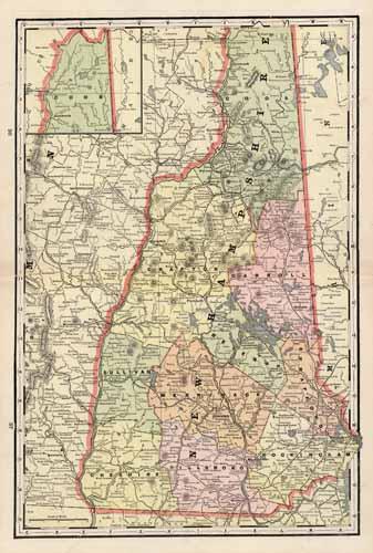This colorful map came from Crams 1898 Universal Atlas – Geographical, Astronomical and Historical. In 1869 the George F. Cram Company was born and the Cram name quickly became synonymous with accuracy and innovation. This map of New Hampshire shows the primary towns, rivers, mountains, roads, and railroads. Each particular county is labeled and colored. This map is a large scale, double page fold-out.