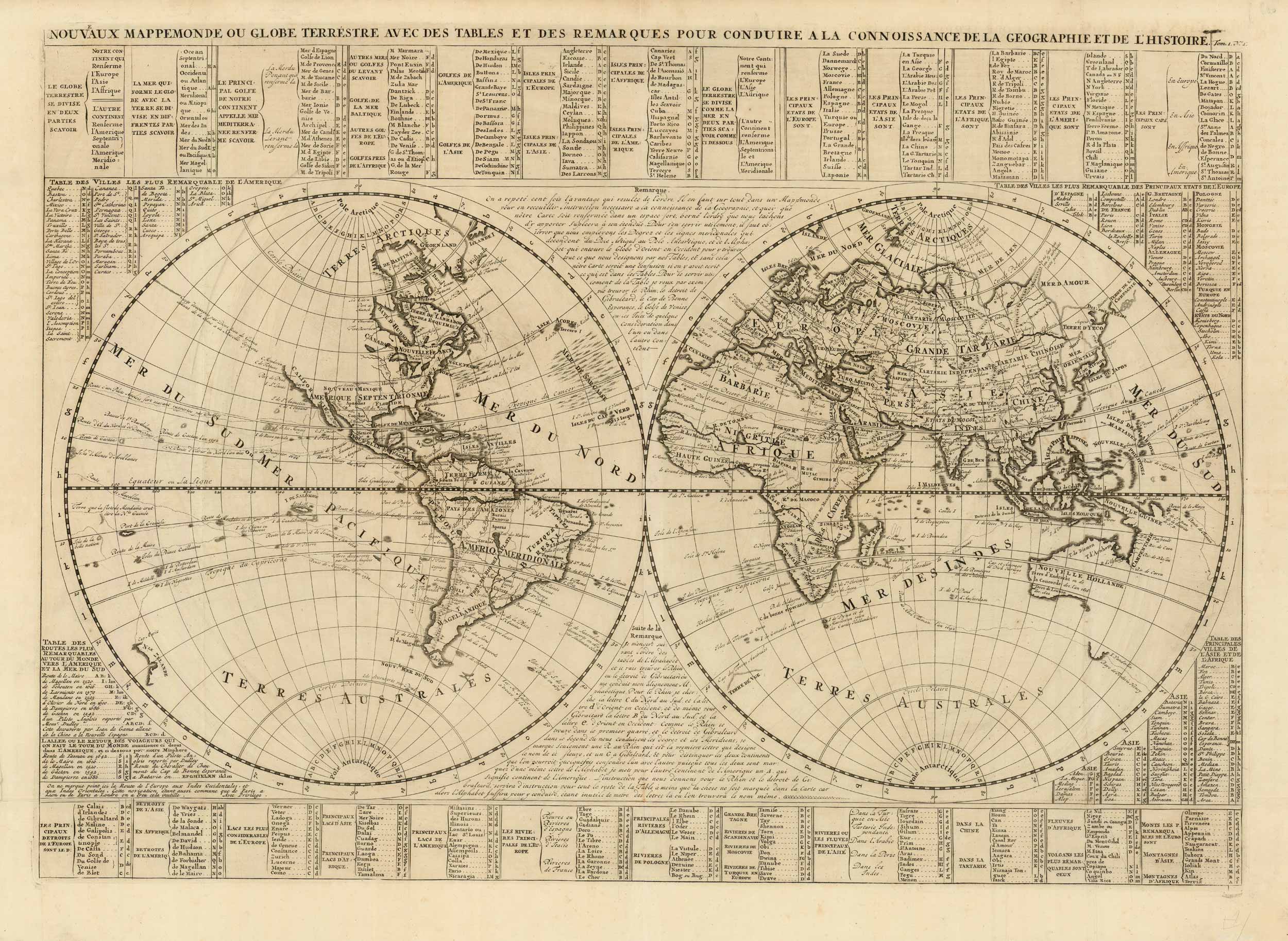 Nouveaux Mappemonde ou Globe Terrestre avec des Tables et des Remarques pour Conduire a la Connoissance de la Geographie et de l Histoire