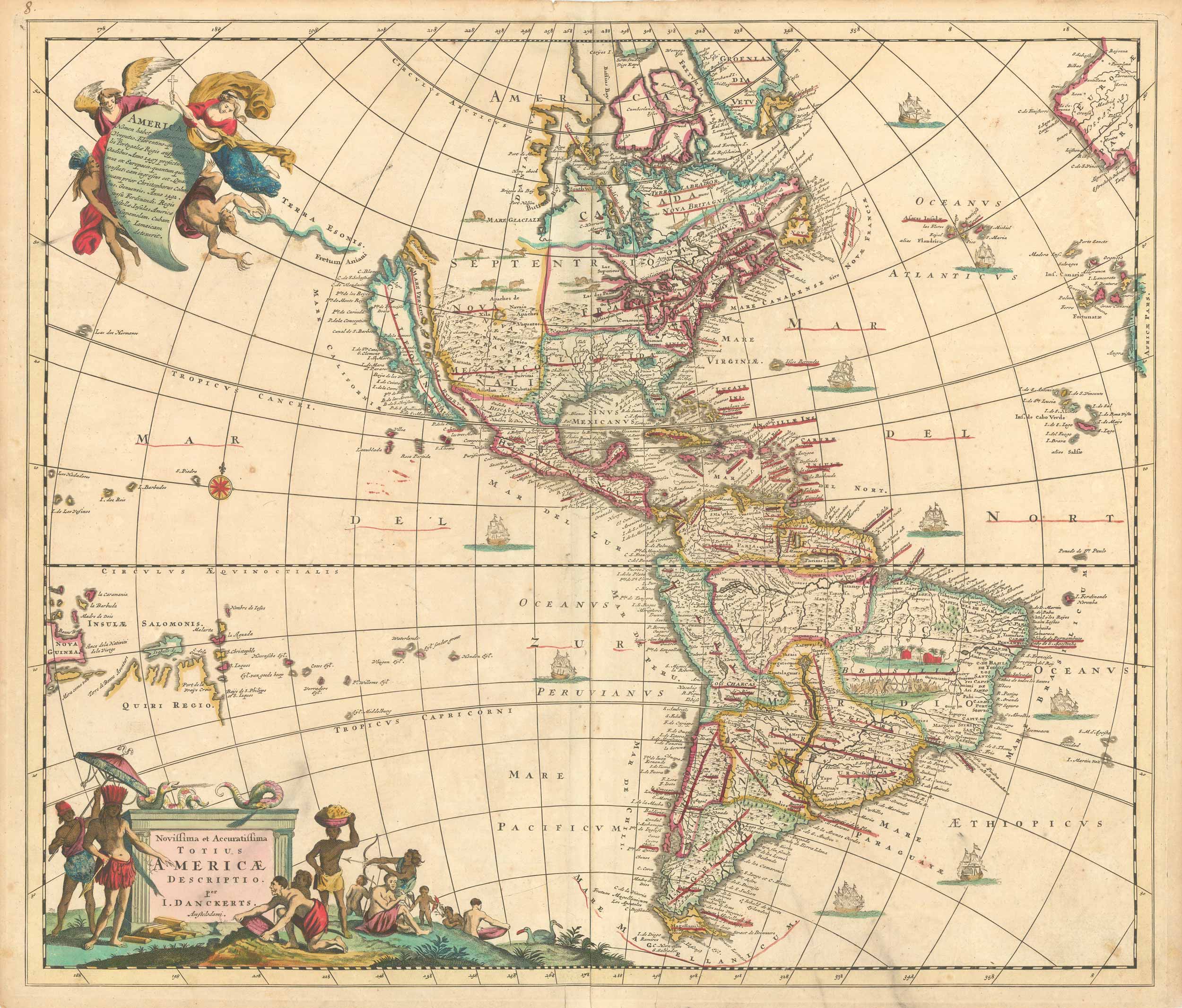 Novissima et Accuratissima Totius Americae Descriptio, which is Latin for The Newest and Most Accurate Description of All of America, is a beautifully crafted 17th-century map of the Americas. Created around 1680-1690, this stunning piece of cartography showcases North and South America with intricate detail, including early European colonial claims, indigenous territories, and the legendary “California as an island” myth.