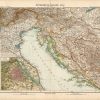 Adolf Stieler produced this exceptional map in 1905 for his “Hand-Atlas”. Maps produced by Stieler are known for their exceptional lithography and details include the names of regions and many cities, rivers, lakes, mountains, canals, railroads and other travel routes. Inset map shows Wien (Vienna).