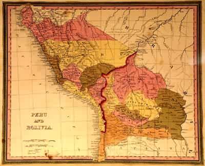 Art Source International is proud to present maps from Henry Schenk Tanner’s “New Universal Atlas”, a volume of work which in 1828 was hailed as a great advancement in the art and science of map-making. Tanner gained notoriety for this work and the one he published before it, his “New American Atlas.” Both were widely considered to be important contributions to early American cartography. This remarkable and rare map of Peru and Bolivia was created for the 1836 edition of the “New Universal Atlas. The unique look is framed by a sage and pink border that complements the original hand coloring in the image of the map. Rivers, lakes, waterfalls, mountains ranges, towns and cities are all listed at one of the greatest degrees of accuracy for maps produced at this time. This map is a true american rarity!!!