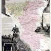 The culmination of French 19th century cartography could well be found in these beautiful maps of regions in France. Produced by Vuillemin, in 1870, these finely crafted steel engravings capture the land and character of the area, as only the French could. While the quality of cartography is exemplar for the time, showing us all the detail of towns, villages as well as rivers and streams, one is immediately struck by how decorative these maps are. Here we see a dramatic glimpse of part of Algeria, the exotic colony on Africas northern coast. These maps give us remarkable detail for this ancient land which spans from the Mediterranean across the Atlas mountains, and ends at the edge of the Sahara desert.