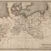 William and Robert Chambers produced this hand colored, 1845 edition of the “Atlas of Modern and Ancient Geography; for use in schools and for general reference” in Edinburgh. Beautiful, vibrant colors outline regions on these otherwise black and white maps. Prussia is illustrated on this map. Details on this map include identification of regions, important cities and towns, rivers, lakes and mountains.
