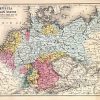 This original hand colored map came from Mitchell’s New School Atlas, published in 1873. This map details cities and towns, rivers, topography, and existing railroads at the time. Wagon trails and major routes of transport are also shown. On relevant maps native indian tribes are labeled.