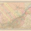 This map was made by George F. Cram for “Cram’s Unrivaled Family Atlas” in 1883. Quebec is illustrated on this map with regions highlighted by color. Other details include the names of regions and important cities, major roads, rivers, and lakes.