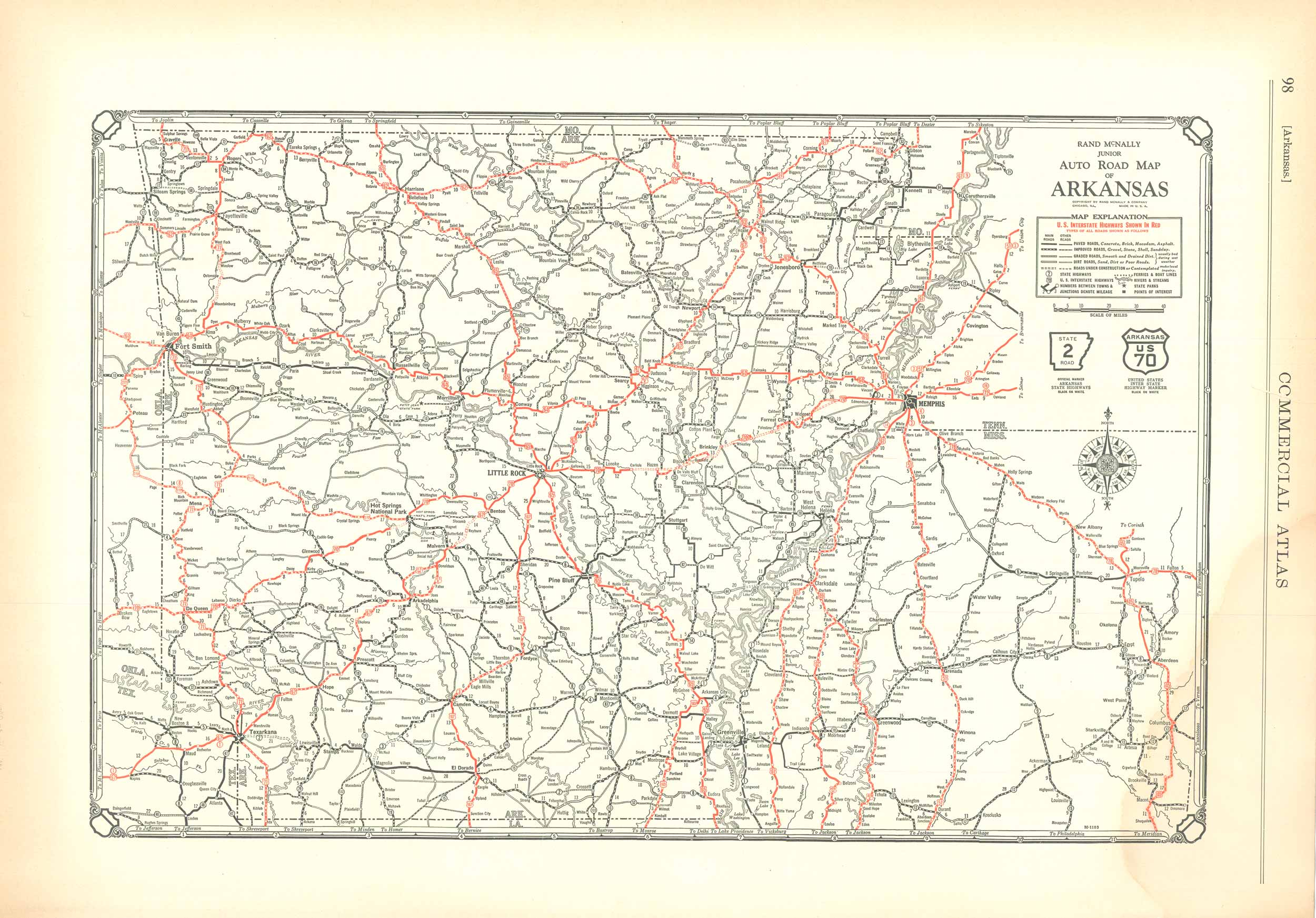 Rand McNally & Company, still a major name in map publishing to this day, began as a small print shop opened in Chicago in 1856 by William H. Rand. The shop originally printed guidebooks and directories. In 1858, Rand hired Andrew McNally who was later to become a partner. Within the next few years, the shop got into the railroad business by starting to print railway tickets and schedules, a key step in the development of the company. The ticket printing led to the publishing of railway guides, and by 1872 Rand McNally and Company had the capacity to publish maps. This map of Arkansas came from Rand McNallys Commercial Atlas. A highly successful run of atlases that lasted over a decade. These maps were primarily used by business, because of their accurate listing of railroads in operation as well as tables of statistical information. This map is unique in several ways, their large format makes an impressive display, and offers additional room where many small towns and extra details are included. Additionally a list of every railroad operating in the state in 1932 is included. All railroad routes are shown on the map. This map includes all cities and towns, lakes, rivers, and bodies of water. All topographical features are also included as well as political features such as counties and Native American Indian reservations.