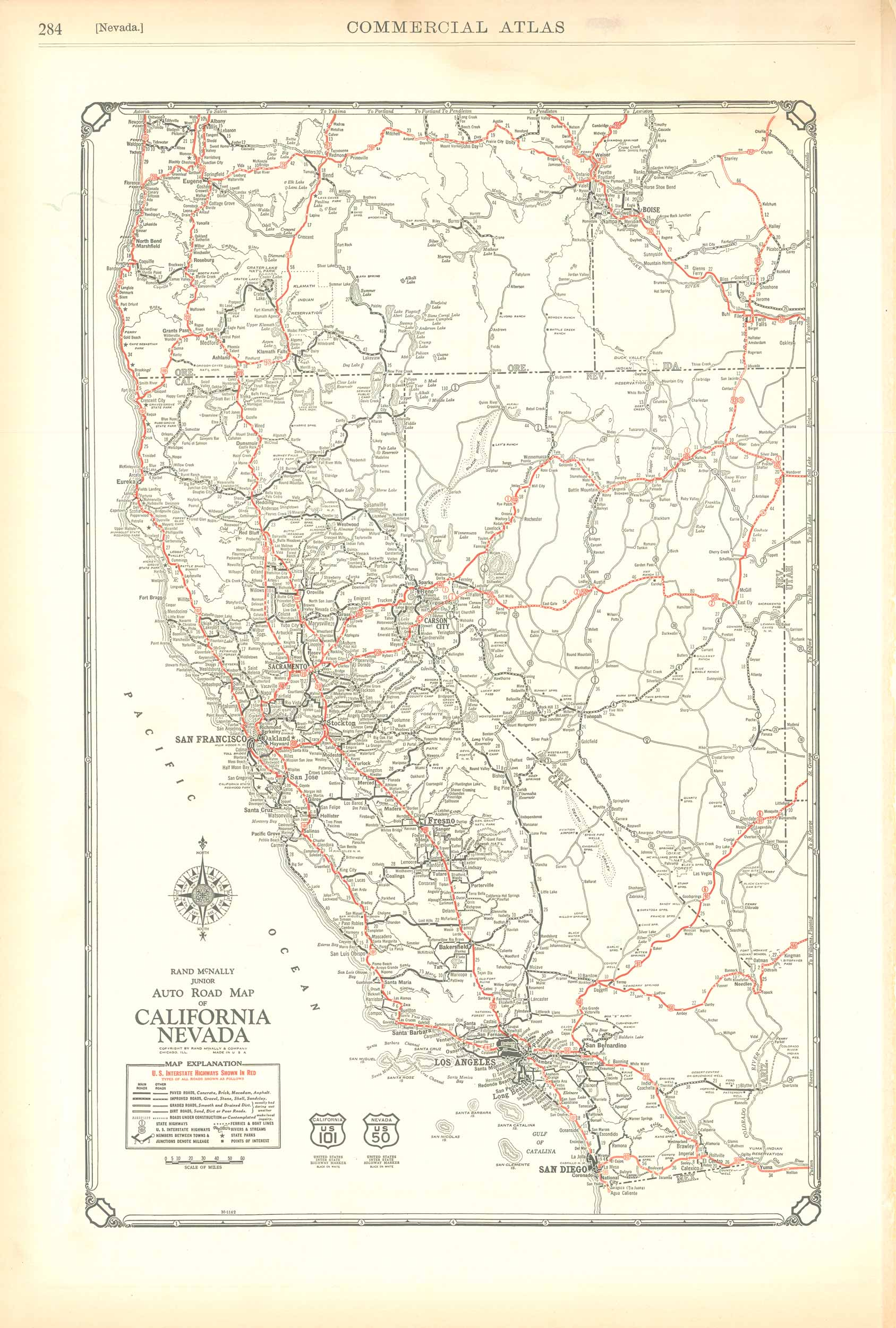 Rand McNally Junior Auto Road Map of California and Nevada