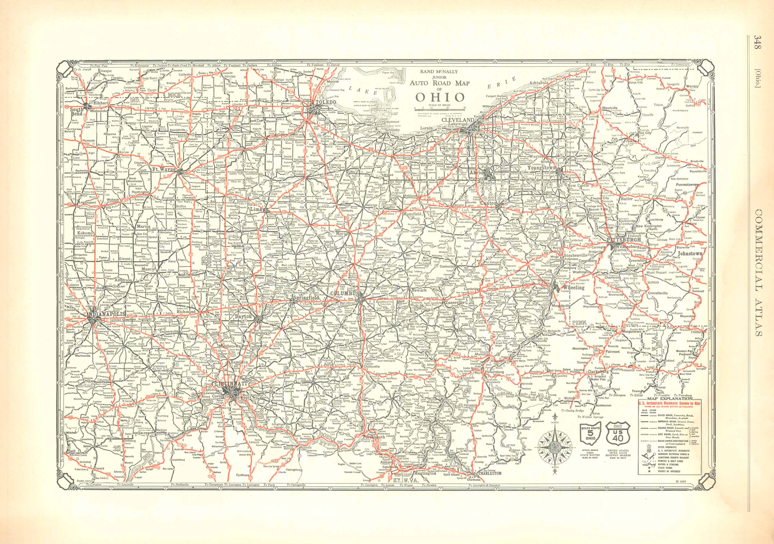 Rand McNally & Company, still a major name in map publishing to this day, began as a small print shop opened in Chicago in 1856 by William H. Rand. The shop originally printed guidebooks and directories. In 1858, Rand hired Andrew McNally who was later to become a partner. Within the next few years, the shop got into the railroad business by starting to print railway tickets and schedules, a key step in the development of the company. The ticket printing led to the publishing of railway guides, and by 1872 Rand McNally and Company had the capacity to publish maps. This map of Ohio came from Rand McNally’s Commercial Atlas. A highly successful run of atlases that lasted over a decade. These maps were primarily used by business, because of their accurate listing of railroads in operation as well as tables of statistical information. This map is unique in several ways, their large format makes an impressive display, and offers additional room where many small towns and extra details are included. Additionally a list of every railroad operating in the state in 1932 is included. All railroad routes are shown on the map. This map includes all cities and towns, lakes, rivers, and bodies of water. All topographical features are also included as well as political features such as counties and Native American Indian reservations.