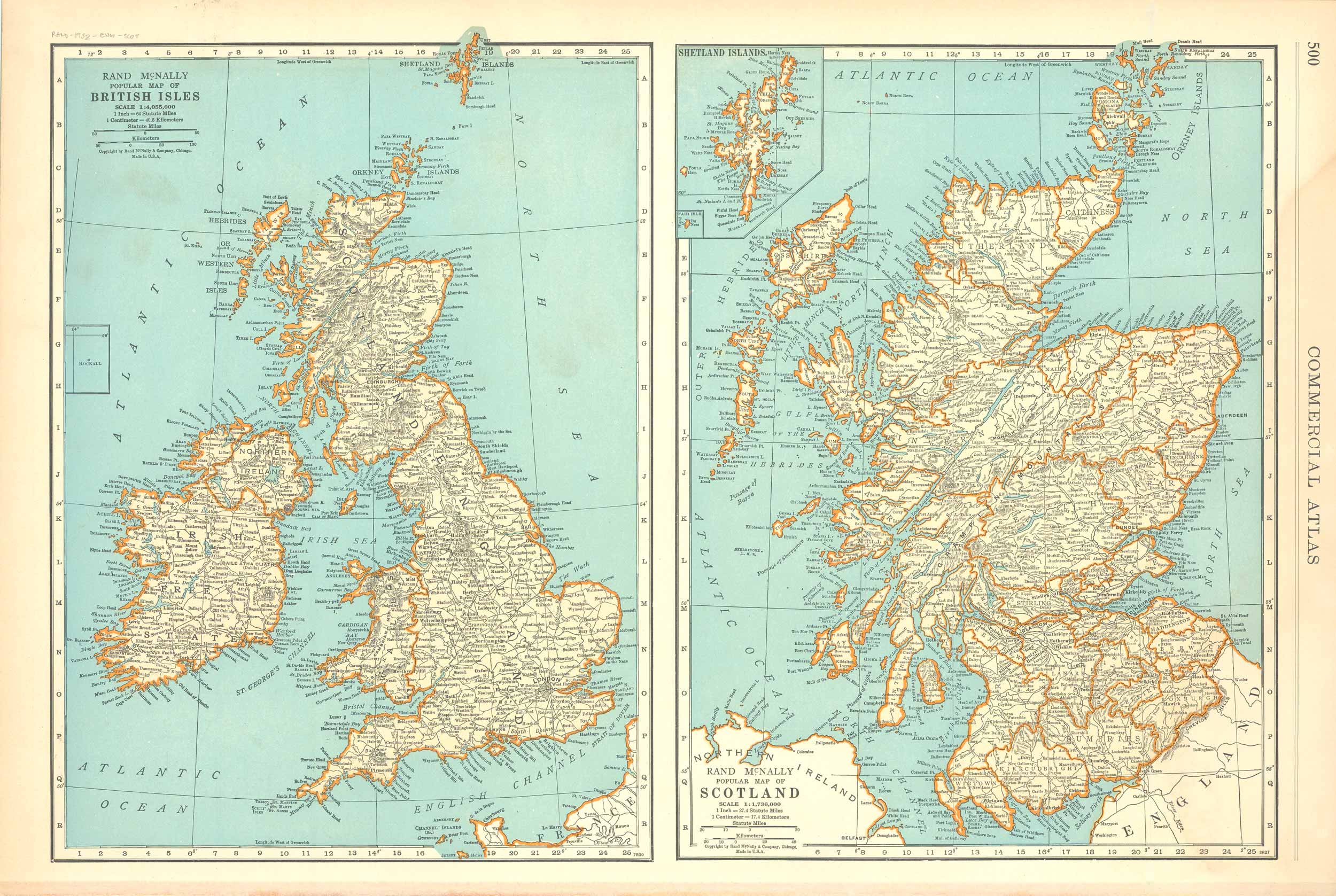 Rand McNally Standard map of British Isles and Scotland