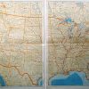The 1936, sixty-seventh edition of the “Rand McNally Commercial Atlas and Marketing Guide” is unique in its inclusion of informative details. Each map is brightly colored; predominantly in orange and tan with blue oceans, lakes and rivers. The United States is illustrated on these double page maps, divided into the eastern and western halves of the country. The names of regions, states, important towns, navigable waterways and major geological features are labeled.