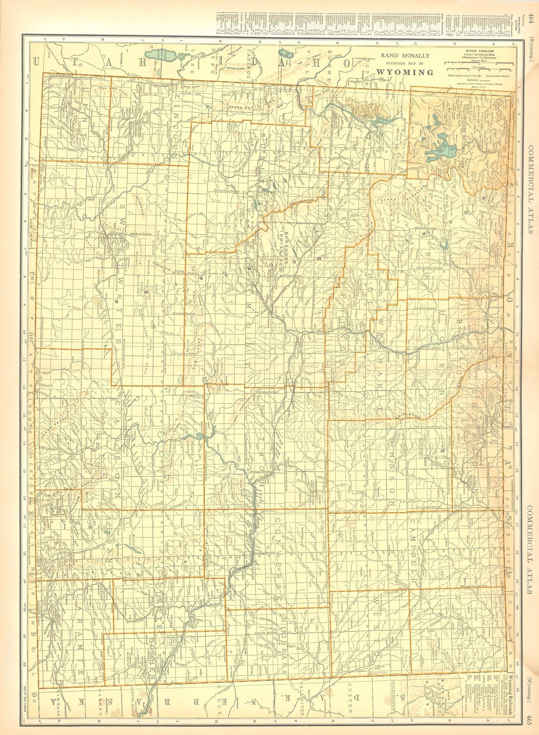 Rand McNally & Company, still a major name in map publishing to this day, began as a small print shop opened in Chicago in 1856 by William H. Rand. The shop originally printed guidebooks and directories. In 1858, Rand hired Andrew McNally who was later to become a partner. Within the next few years, the shop got into the railroad business by starting to print railway tickets and schedules, a key step in the development of the company. The ticket printing led to the publishing of railway guides, and by 1872 Rand McNally and Company had the capacity to publish maps. This map of Wyoming came from Rand McNallys Commercial Atlas. A highly successful run of atlases that lasted over a decade. These maps were primarily used by business, because of their accurate listing of railroads in operation as well as tables of statistical information. This map is unique in several ways, their large format makes an impressive display, and offers additional room where many small towns and extra details are included. Additionally a list of every railroad operating in the state in 1932 is included. All railroad routes are shown on the map. This map includes all cities and towns, lakes, rivers, and bodies of water. All topographical features are also included as well as political features such as counties and Native American Indian reservations.