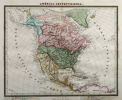 This beautiful hand colored, copper plate engraved map of the Americas was made ca.1800 by Pablo Alabern. Countries and important cities are labled in Spanish. Details include illustrations of major sea routes, mountain ranges, rivers, and lakes.