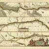 Superb map showing the course of the Dnieper River. The map is presented in the strip style with three horizontal strips, each with a compass rose orienting the map. Richly embellished with an elaborate title cartouche surrounded by hunters and a distance scale cartouche topped with putti. The plate was originally engraved by Jan Jansson. After his death it was inherited by his son-in-law, known as Jansson-Waesberg, who published it in conjunction with Moses Pitt.