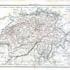Beautiful hand-colored copper plate engraving, in French, of Switzerland. Shows towns, lakes, rivers, canton divisions. Fine hatching on mountains, lakes.