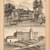 This black and white engraving shows the residence of the late Hon. H.L. Hopkins, in Burrillville, Rhode Island, and the Harrisville Woolen Mills, in Harrisville, Rhode Island. It was issued as part of the “History of the State of Rhode Island”, published in 1874, by Hoag, Wade & Co., Philadelphia, Pennsylvania. The images from this collection capture the romantic history of many important homes, businesses, churches and landmarks in 1878 Rhode Island.
