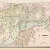 This beautiful map of Richmond and Manchester, Virginia was produced by John Iliff via cerographic engraving (a process in which the printing plate is manufactured from an engraving on wax). Using information from the 1890 US census, these maps are very detailed. Streets, various points of interest, rivers, and other geographic features are shown on this map. These maps have become increasingly difficult to find over the years.