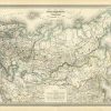 Exceptionally large, detailed steel-plate map of Russia in 1860, from Poland to Kamchatka. Shows mountains, rivers, transportation routes. In French, scale 1:12 million.