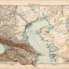 Adolf Stieler produced this exceptional map in 1905 for his “Hand-Atlas”. Maps produced by Stieler are known for their exceptional lithography and details include the names of regions and many cities, rivers, lakes, mountains, canals, railroads and other travel routes.