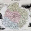 The culmination of French 19th century cartography could well be found in these beautiful maps of regions in France. Produced by Vuillemin, in 1870, these finely crafted steel engravings capture the land and character of the area, as only the French could. While the quality of cartography is exemplar for the time, showing us all the detail of towns, villages as well as rivers and streams, one is immediately struck by how decorative these maps are. With vignettes of towns and castles, images of local celebrities and heroes, as well as coats of arms, these images have an aesthetic presentation that is tasteful and historic. The regions depicted here are by Department which were developed by Napoleon, and can be a benefit, as they afford us much smaller focus on a region than Province maps might offer.