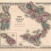 Art Source International is proud to offer this map of Southern Italy- Kingdom of Naples, I. Sardinia & Malta (with an inset map of Malta and its Dependencies) from the 1866 edition of Coltons General Atlas. Colton atlases, especially those from the late 1860’s, have become increasingly difficult to find. This highly detailed map is distinguished by its hand coloring and signature 3/4″ border. Regions, cities and towns, islands, and various geographic features are shown on this map.
