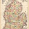 This map comes from Rand, McNally & Co.s Atlas of the World, produced in 1894. Each, very detailed map, has light pastel coloring and identifies counties, major cities, rivers, and topographical features. State boundaries are designated with red shading. This map of Southern Michigan uniquely features an excellent layout of Michigan’s Railroad System at the turn of the century. These double paged, large format maps look great framed.