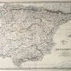 Alexander Keith Johnston, took the title Geographer at Edinburgh in Ordinary to the Queen when he began map-making in Scotland in 1826. Johnston, famous for his attention to geographic detail, made this rare edition of the “Royal Atlas of Modern Geography” in 1863. Spain and Portugal are illustrated on this hand colored map. Details include the names of regions, rivers, lakes, mountains, important cities, and state boarders. Each large scale map was printed on thick paper with vibrant color highlighting boarders.