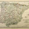 Alexander Keith Johnston took the title Geographer at Edinburgh in Ordinary to the Queen when he began map-making in Scotland in 1826. Johnston, famous for his attention to geographic detail, made this rare edition of the “Handy Royal Atlas of Modern Geography” in 1878. Spain and Portugal are illustrated in this beautiful map. Details include the names of regions, rivers, lakes, mountains, important cities, and state boarders. Each large scale map was printed on thick paper with vibrant outline color.