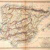 This hand colored map is from the Modern Harrow School Atlas pulblished in 1861 by Edward Stanford. Spain and Portugal with detail of provinces are illustrated on this beautiful map. Details include major roads, railroads, a submarine telegraph line, and important cities, rivers, lakes, illustrations of mountains, and notes on the area. Several scales ( Spanish Leagues, Castilian Lea, Portuguese Lea, French Post Lea and British Miles) are provided at the bottom of the map. The majority of the map is black and white while country borders, water bodies, and the names of major cities are highlighted in bright colors.