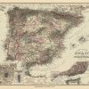 This hand colored map was made by O.W.Gray and Son in 1882 for “The National Atlas”. Spain and Portugal are illustrated on this map. Regions are distinguished by bright pastel color. Other details include the names of regions and important cities, and illustrations of rivers, lakes, and mountains.