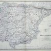 This large-scale map produced by Geographer to the Queen of Scotland, Alexander Keith Johnston was published in 1861 in his “Royal Atlas of Modern Geography.” Johnston apprenticed to James Kirkwood & Sons, Engravers in 1820. In 1826, he partnered with his brother William in W. & A.K. Johnston. He Died July 9th, 1871 in Yorkshire. Outlines on this map of Spain and Portugal are hand colored. The incredible level of detail provided is unique to this Scottish mapmaker. This map shows all topography including mountains and physical features, rivers and lakes, cities and towns, provinces and regions, and railroads. The decorative border shows latitude and longitude to the degree.