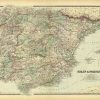 This beautiful, hand colored, steel plate engraved map showing Spain and Portugal was made by William Bradley & Bros. in 1889. Pastel color distinguishes regions on this very detailed map from the hard to find map-maker. Territories, important cities, rivers, lakes, and mountain ranges are identified on the map. Minorica on its own in an inset.