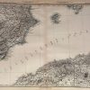 This German map of south-eastern Spain was made in 1881 by Adolf Stieler for Stieler’s Hand Atlas. Borders are distinguished by beautiful hand painted outline color. This detailed, copper plate engraved, map shows topographical features, and many place names. An inset shows the vicinity of Madrid.