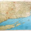 The 1936, sixty-seventh edition of the “Rand McNally Commercial Atlas and Marketing Guide” is unique in its inclusion of informative details concerning population sizes, district uses, the size of counties, and railroad routes. The names and populations of principal cities are listed beside the map. Each map is brightly colored; predominantly in green and tan with blue oceans, lakes and rivers, and brown coloring of high density metropolitan areas. Connecticut and Rhode Island are illustrated on this large, double page map.The names of states, counties, important towns, lakes, rivers and mountain ranges are labeled. A list of state railroad lines is also provided on the map.
