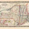 This exceptional map is from “Mitchells New General Atlas” published by S. Augustus Mitchell, Jr in 1861. This steel plate engraved map has original hand coloring and crisp engraved lines. Maps from this 1861 ( 2nd edition) atlas have become very difficult to acquire.Surrounding this map of the state of states of New York, New Hampshire,Vermont,Massachusetts,Rhode Island and Connecticut is a ‘ inch floral border. Counties, provinces, many cities,rivers and lakes are identified on this beautiful map.Inset maps of the harbor and vicinity of Boston and the harbor and vicinity of New York are included.