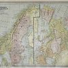 This detailed map of Sweden & Norway was printed in the “People’s Family Atlas of the World,” published in 1889. This map, which shows a great deal of topographical information, including lakes and rivers, shows the various countries colored in muted pastels.