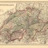 This hand colored map was made by O.W. Gray and Son in 1882 for “The National Atlas.” This map illustrates Switzerland. Regions are distinguished by bright pastel color. Other details include the names of regions and important cities, and illustrations of rivers, lakes, and mountains.