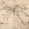 This black and white map is from the “Atlas de Geographie”, made by Felix Delamarche in Paris, 1856. The dispersion of the children of Noah is illustrated on this well maintained French map.