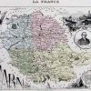The culmination of French 19th century cartography could well be found in these beautiful maps of regions in France. Produced by Vuillemin, in 1870, these finely crafted steel engravings capture the land and character of the area, as only the French could. While the quality of cartography is exemplar for the time, showing us all the detail of towns, villages as well as rivers and streams, one is immediately struck by how decorative these maps are. With vignettes of towns and castles, images of local celebrities and heroes, as well as coats of arms, these images have an aesthetic presentation that is tasteful and historic. The regions depicted here are by Department which were developed by Napoleon, and can be a benefit, as they afford us much smaller focus on a region than Province maps might offer.