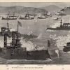 This illustration depicts the history of the Spanish-American War. Published by George F. Cram in 1898, this drawing shows the attempt of Cerveras (Pascual Cervera y Topete) fleet to escape from Santiago Harbor (on July 3, 1898).