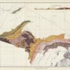 This beautiful, geological formation map listing all the soil, rock, sand, gravel, and more of the northern peninsula of Michigan. Published in 1936 by the United States Geological Survey, this map gives great detail and the color has remained quite bold. Just a few of the categories on the legend include formations of Archeozoic, Proterozic, and Paleozoic with formation stage, description, and economic resources. At the top of the map, a geological cross-section of upper Michigan is included. This map would look beautiful matted and framed or a great educational map for geological study.