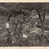 This illustration depicts the history of the Spanish-American War. Published by George F. Cram in 1898, this drawing shows the Rough Riders at La Quasina in battle.
