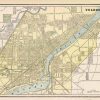 This colorful map came from Crams 1898 Universal Atlas – Geographical, Astronomical and Historical. In 1869 the George F. Cram Company was born and the Cram name quickly became synonymous with accuracy and innovation. This map of Toledo shows the primary streets, rivers, railroads, parks, and common areas.